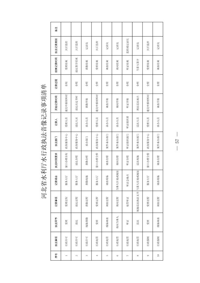 河北省水利厅水行政执法音像记录事项清单